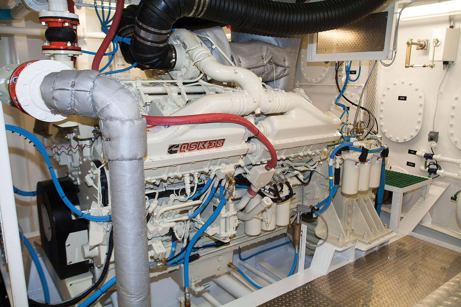 Main Iron Works/Intracoastal Iron Works in Houma built the vessel, which features twin Cummins QSK38-M1 Tier 3-compliant main engines from Cummins Mid South that combine for 2,000 hp. Sewart Supply outfitted the vessel’s Twin Disc MG 5321 gearboxes (6.3:1 ratio). Ship’s service power is from Northern Lights M40C3 40 kw. generators from Southern Power & Equipment. The vessel is propelled by Kahlenberg five-blade stainless-steel propellers from Kelpsch & Will Propeller (72 by 58 inches). The Jean Pierre Cenac’s steering system is by Engine Monitor.