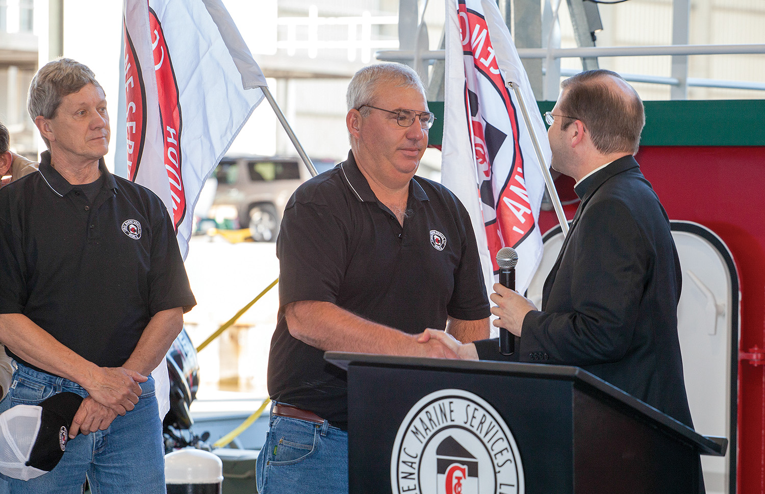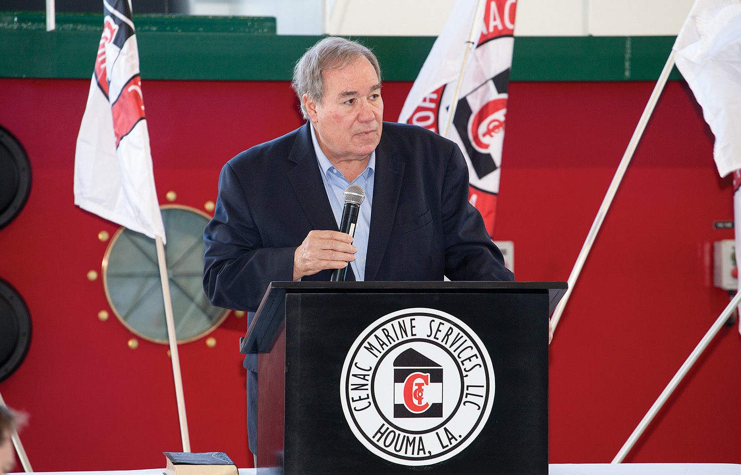 Cenac Marine Services LLC (Cenac Towing) christened its newest towboat December 9 at the company’s Houma, La., headquarters in an event that celebrated both the history of the Cenac family and Cenac Group’s recent acquisition of notable Houma shipbuilder Main Iron Works.