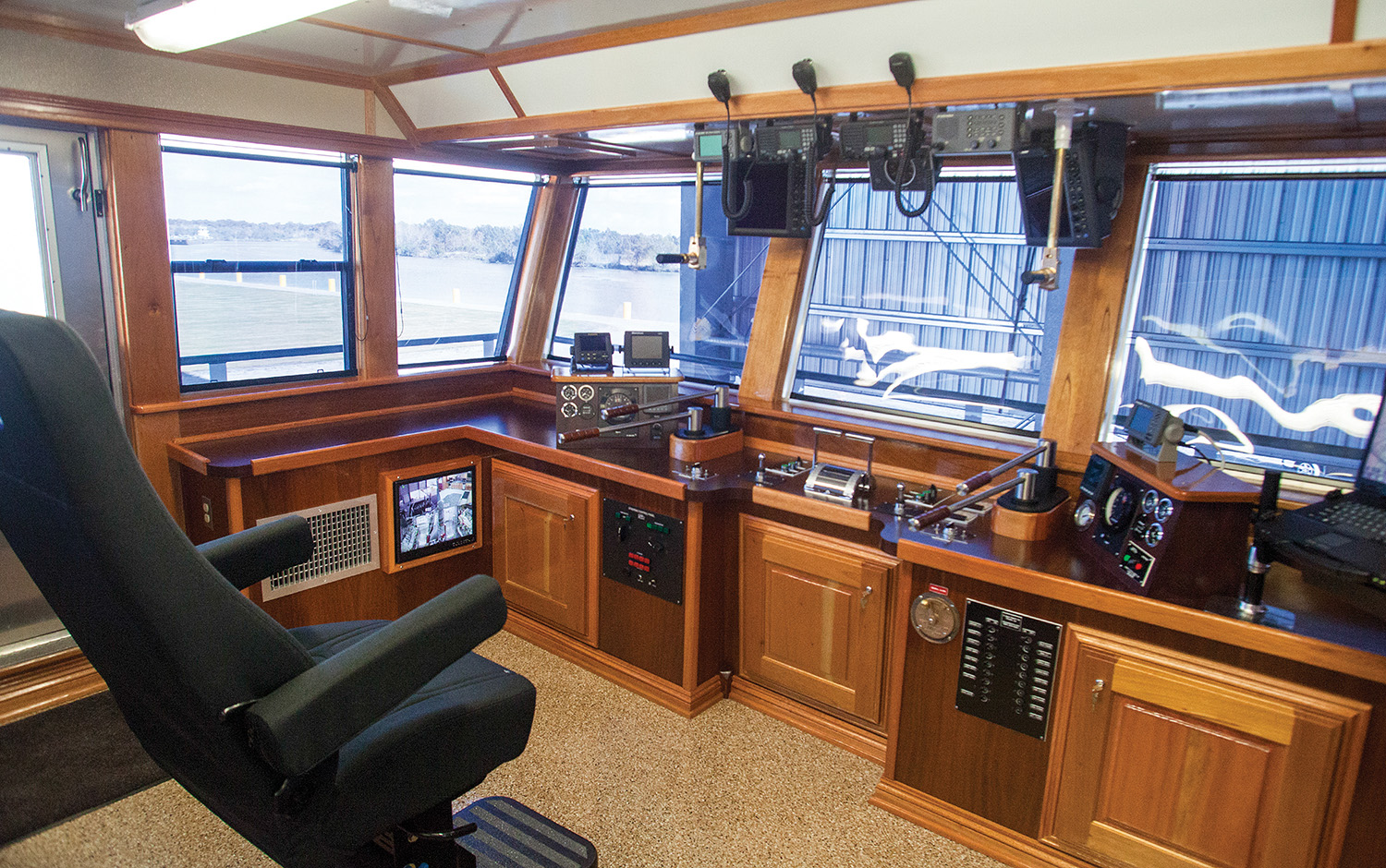 Cenac said legendary naval architect Frank Basile of Entech & Associates “extended the lines for us” on the series, boosting it from the 61.5 by 24 feet to the current dimensions. Engineers at Cenac Towing have also redesigned the engineroom and interior over the years. Because Arlen and Benny Cenac have roots in the “maintenance side of the business,” the boat is designed to make overhauls quick and easy.