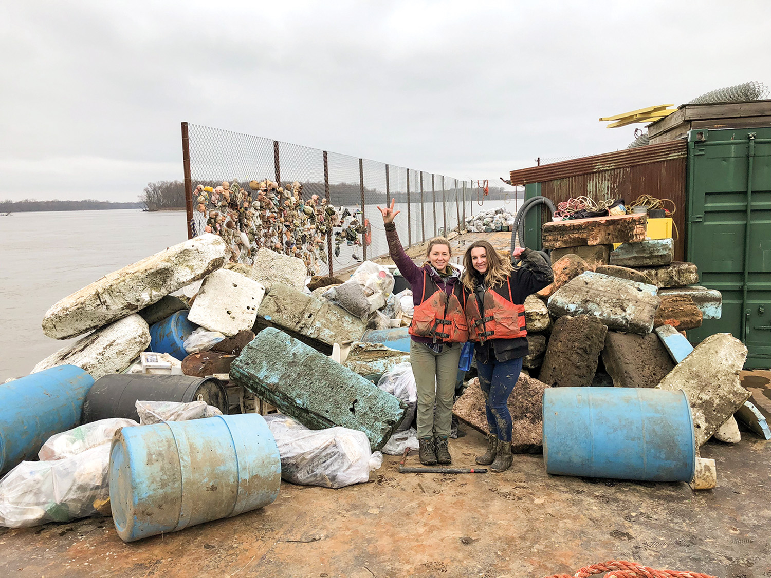 More than 125 student volunteers showed up in Grafton, Ill., in March to help Living Lands & Waters remove 26,632 pounds of garbage from the shoreline near the confluence of the Illinois and Mississippi rivers. Some items retrieved from the shore included 70 tires, 71 55-gallon plastic barrels, and over 1,200 square feet of styrofoam. The organization said it also removed more than 10 acres of invasive bush honeysuckle and painted the dining halls of three group camps at nearby Pere Marquette State Park. (Photos courtesy of Living Lands & Waters)