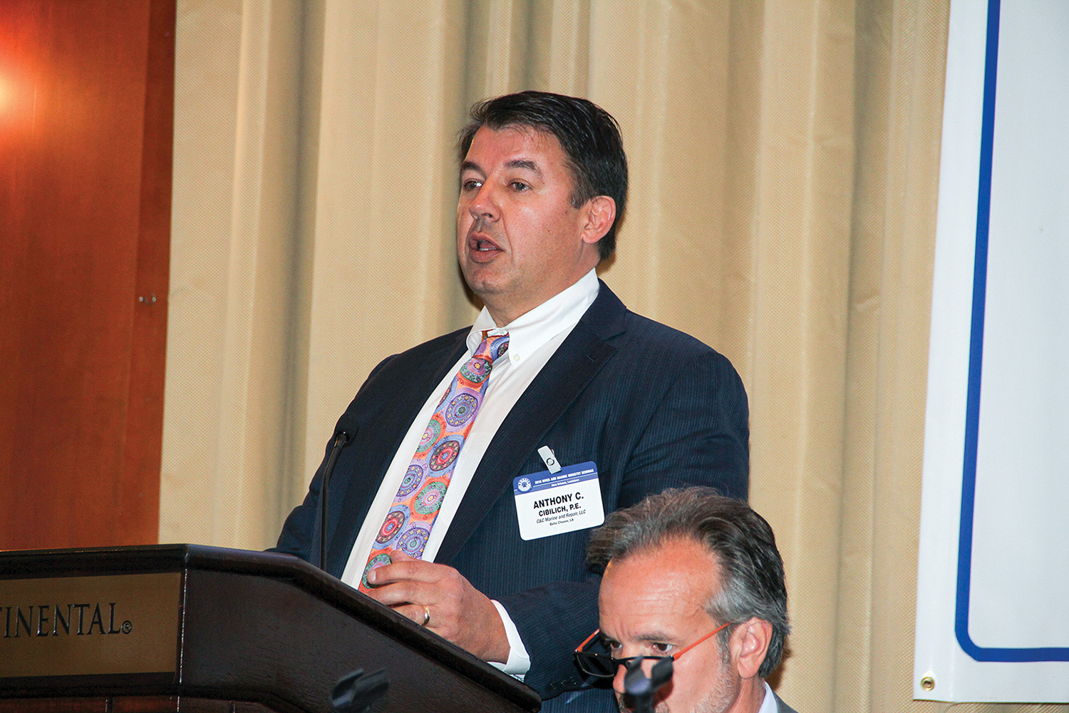 Anthony Cibilich, a shipyard representative at C&C Marine & Repair, spoke on his company’s new advanced drydocks. He called 3-D modeling and computer-aided design software “the best thing ever to happen to shipyards.”