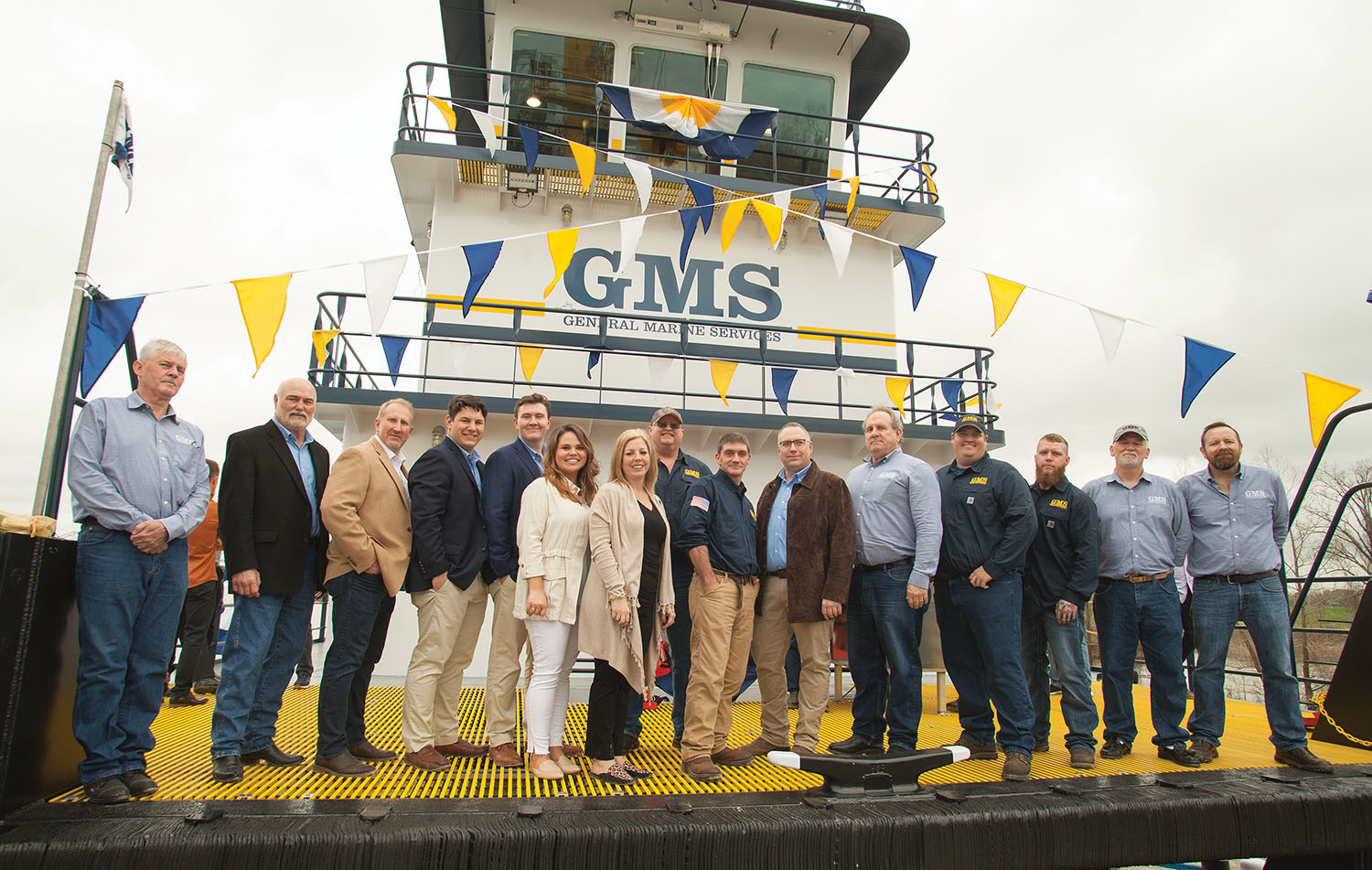 Baton Rouge, La.-based General Marine Services (GMS) christened its newest towboat, the mv. Syble Fay, February 15 at McKinney Salvage & Heavy Lift’s fleet on the east bank of the Mississippi River at Mile 228. The Syble Fay, named for company owner Gene Moore’s late mother, is GMS’ fourth vessel, with additional growth soon to follow.