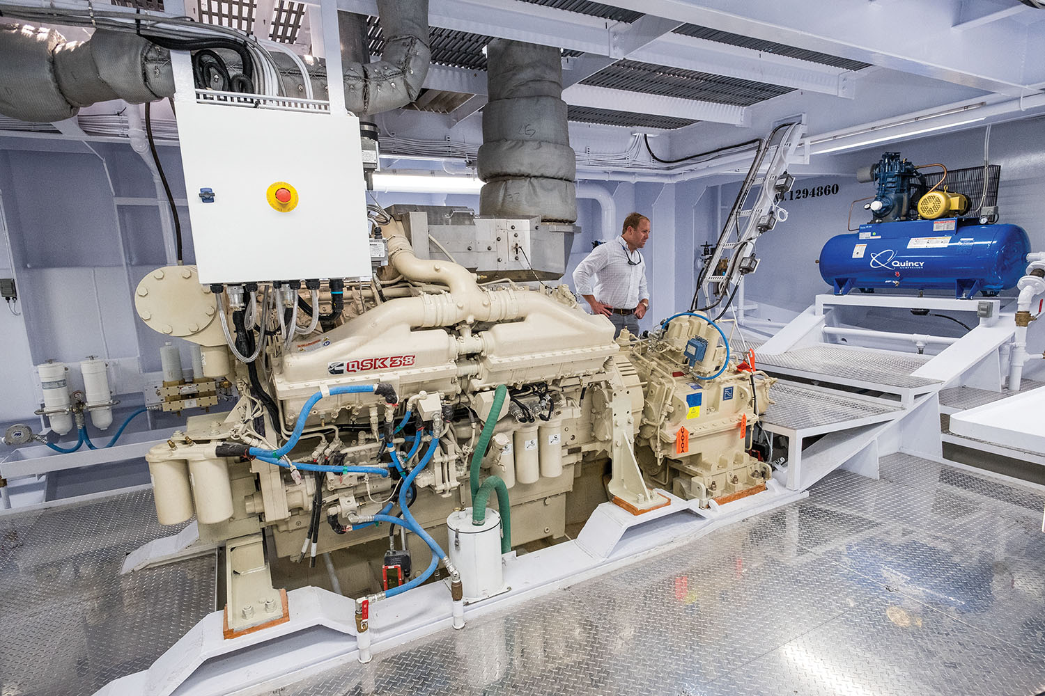 Ship’s service power comes courtesy of two Cummins 99 kw. generators, also from Cummins Marine.