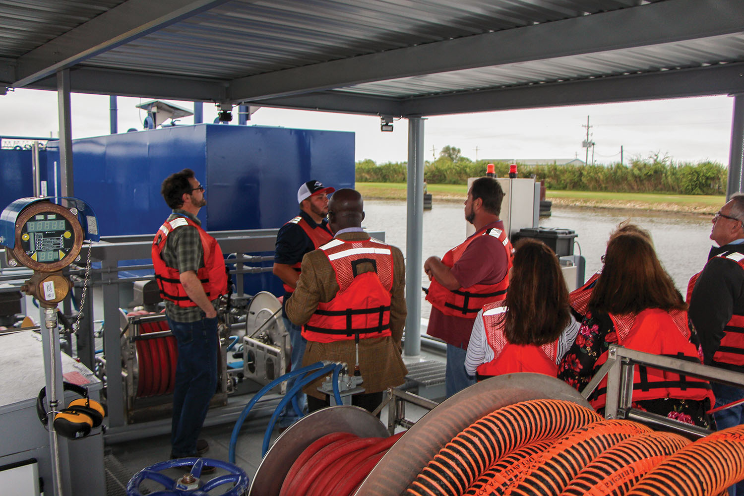 The Rev. Sinclair Oubre asked for God’s blessings on the boat and presented the ship’s Bible to Capt. Paul McKinney, while Rick Burgard, vice president, recognized the crew, consisting of Trey Dubose, Josh Johnson, Miles Watson and Christopher LeBlanc. Coast Guard Captain of the Port Jacqueline Twomey presented the crew with a ship’s flag and spoke about MFS’ many contributions to the Sabine Neches Waterway industrial complex.