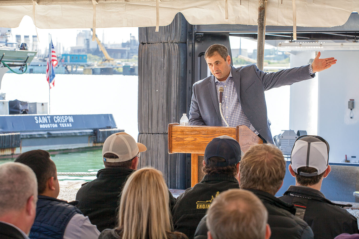 “I have loved this business of towboats since I was about this tall,” said Butler, speaking at the December 19 christening. “It all started, actually, right here on this piece of property.”