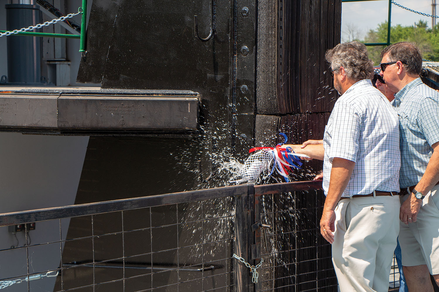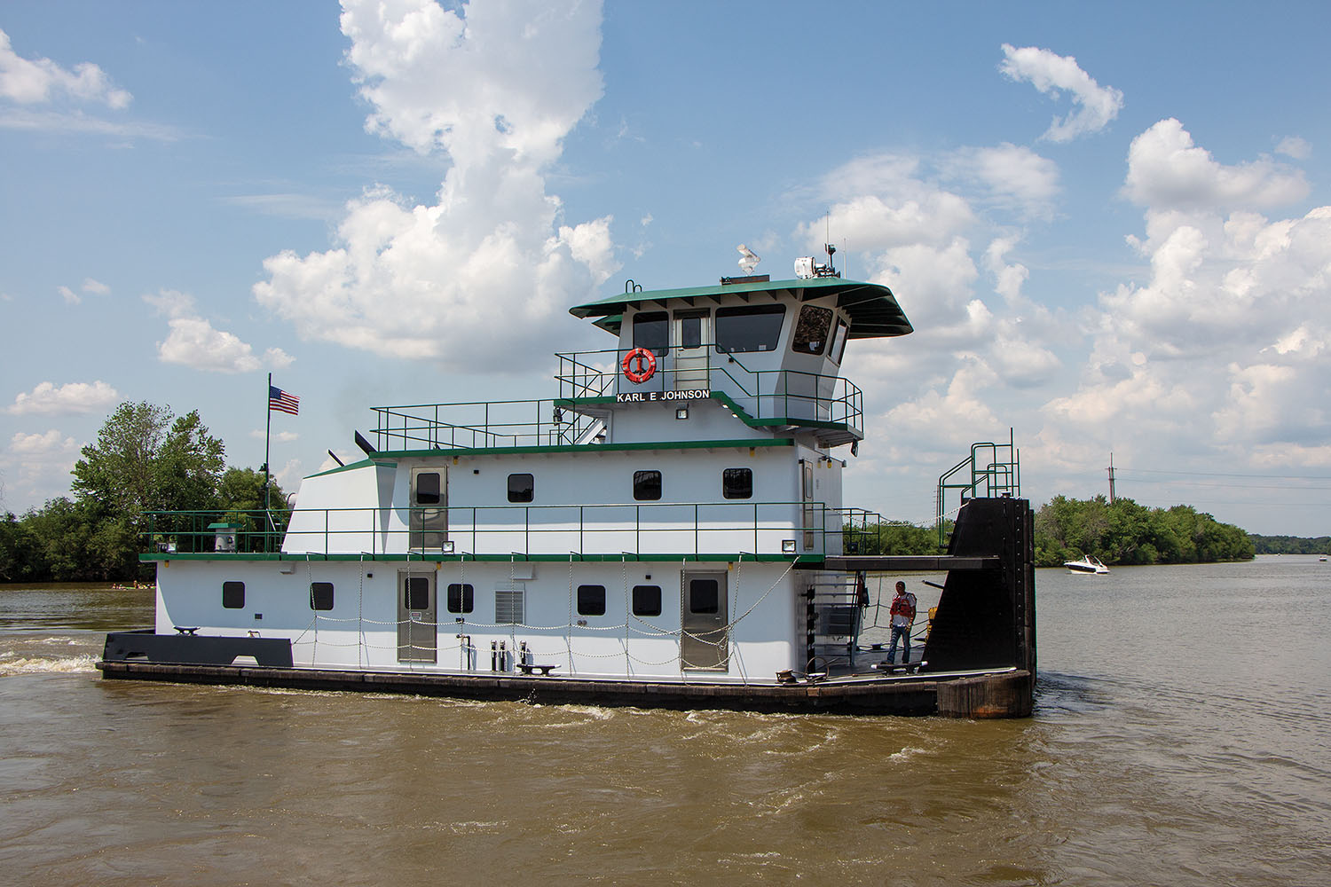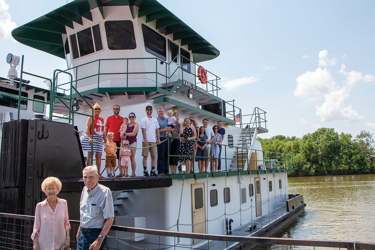 Caption for top photo: Southern Illinois Transfer Company christened the mvs. Karl E. Johnson and Patricia A in a June 12 ceremony on the Kaskaskia River in Evansville, Ill. (Photo by Zac Metcalf)
