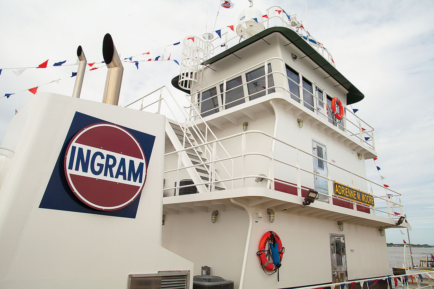 Members of the Ingram Marine Group family gathered in Reserve, La., June 2 to honor two longtime Ingram leaders and commission a pair of new towboats into the company’s fleet. The new vessels, the mv. Adrienne M. Moore and the mv. Tom Cornwell, are part of a 10-boat series Main Iron Works is building for Ingram. The vessels are also Ingram’s first new builds in close to 40 years.