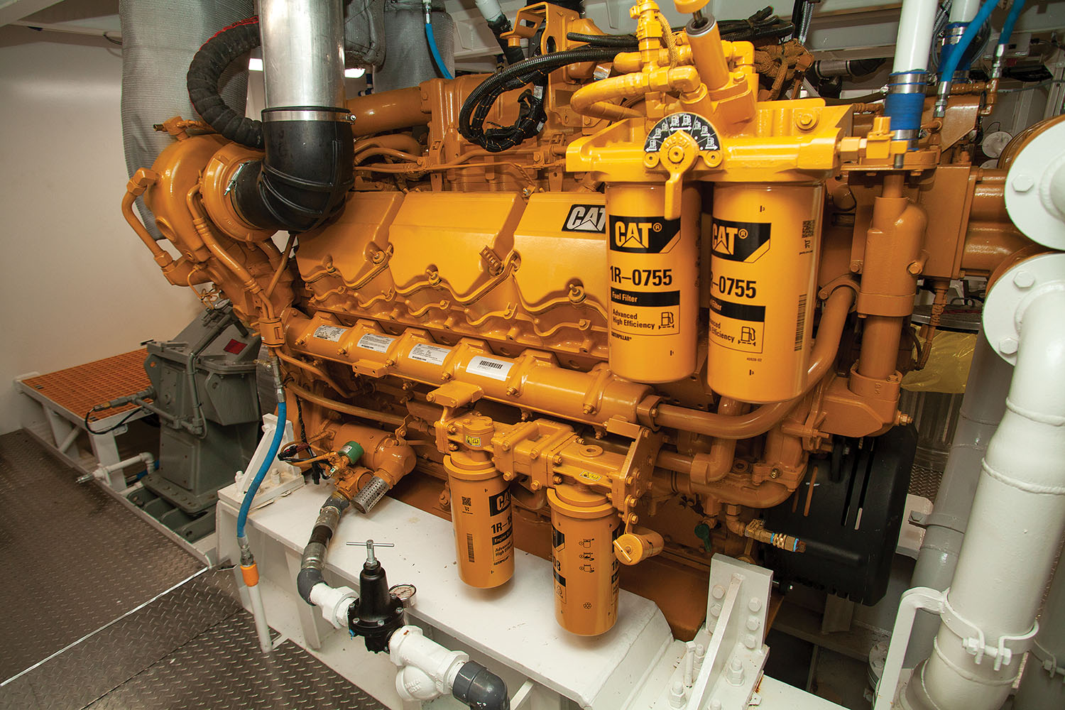The vessel’s 1,600 hp. come from a pair of Caterpillar C32 main engines from Louisiana CAT. Those engines and the vessel’s Reintjes WAF 474 reduction gears from Karl Senner turn 76- by 62-inch, four-blade stainless steel propellers from Houma Machine & Propeller.