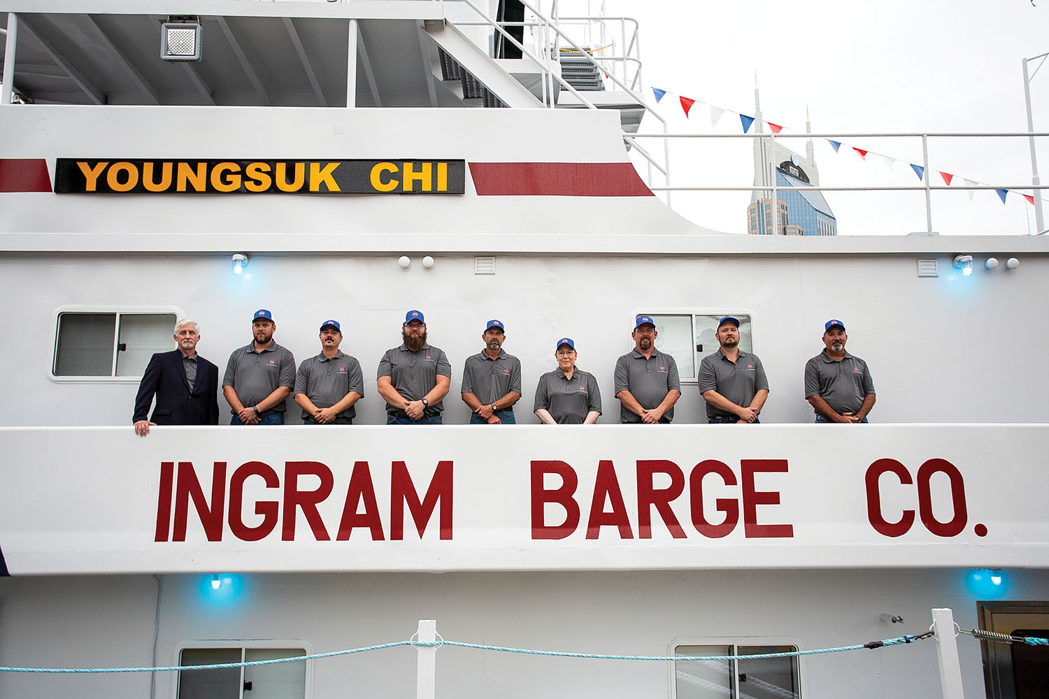 Ingram Barge Company, Nashville, Tenn., held a rechristening August 30 for four vessels that are part of its approximately 140-vessel fleet: the mvs. Youngsuk Chi, James L. Hamilton, Kent W. Freeman and A.A. Birch III.