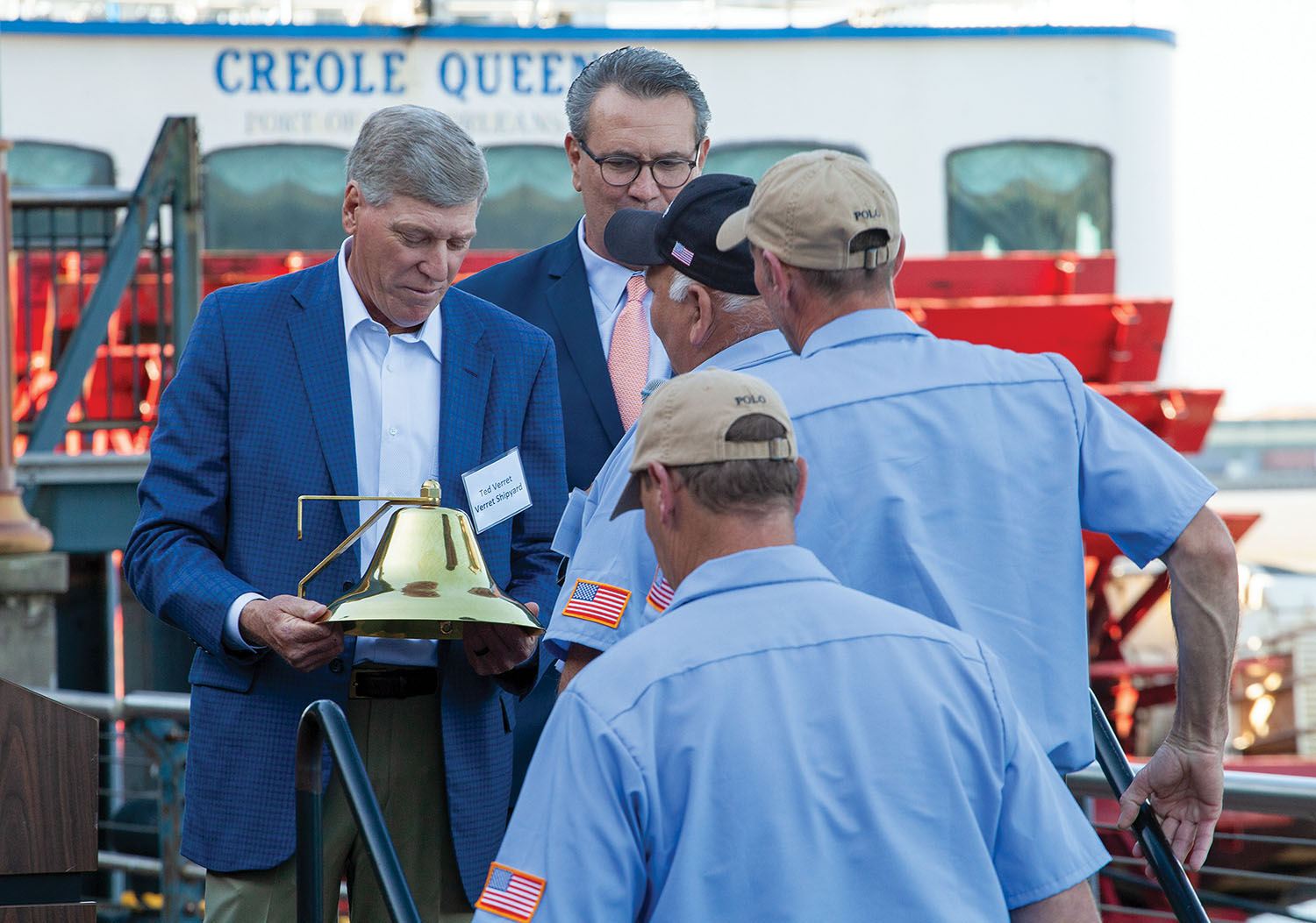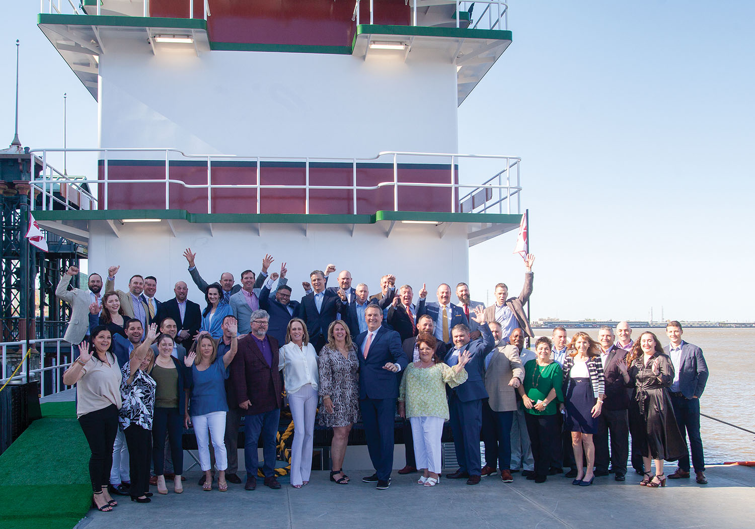 In greeting the crowd gathered for the christening along the Mississippi River in downtown New Orleans, Patrick Stant, president of McDonough Marine, said he was thrilled to be together with so many friends, colleagues and McDonough family members after two long years spent largely apart. He then honored the namesake of the vessel, Mrs. Alma Grace McDonough.