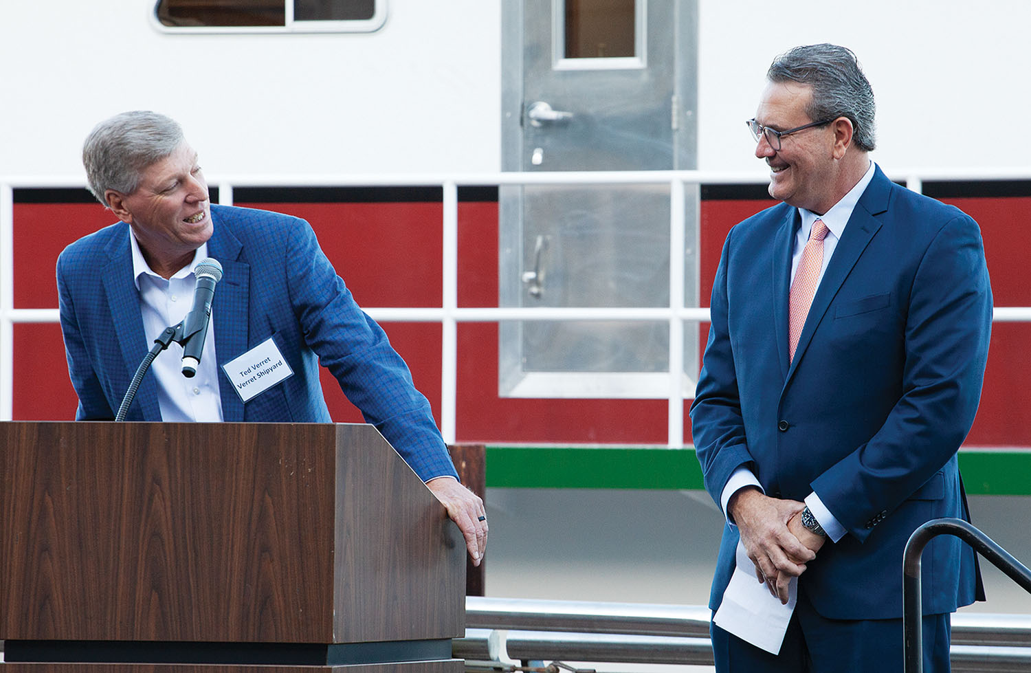 Addressing the crowd, Verret said his shipyard and McDonough Marine share similar legacies.