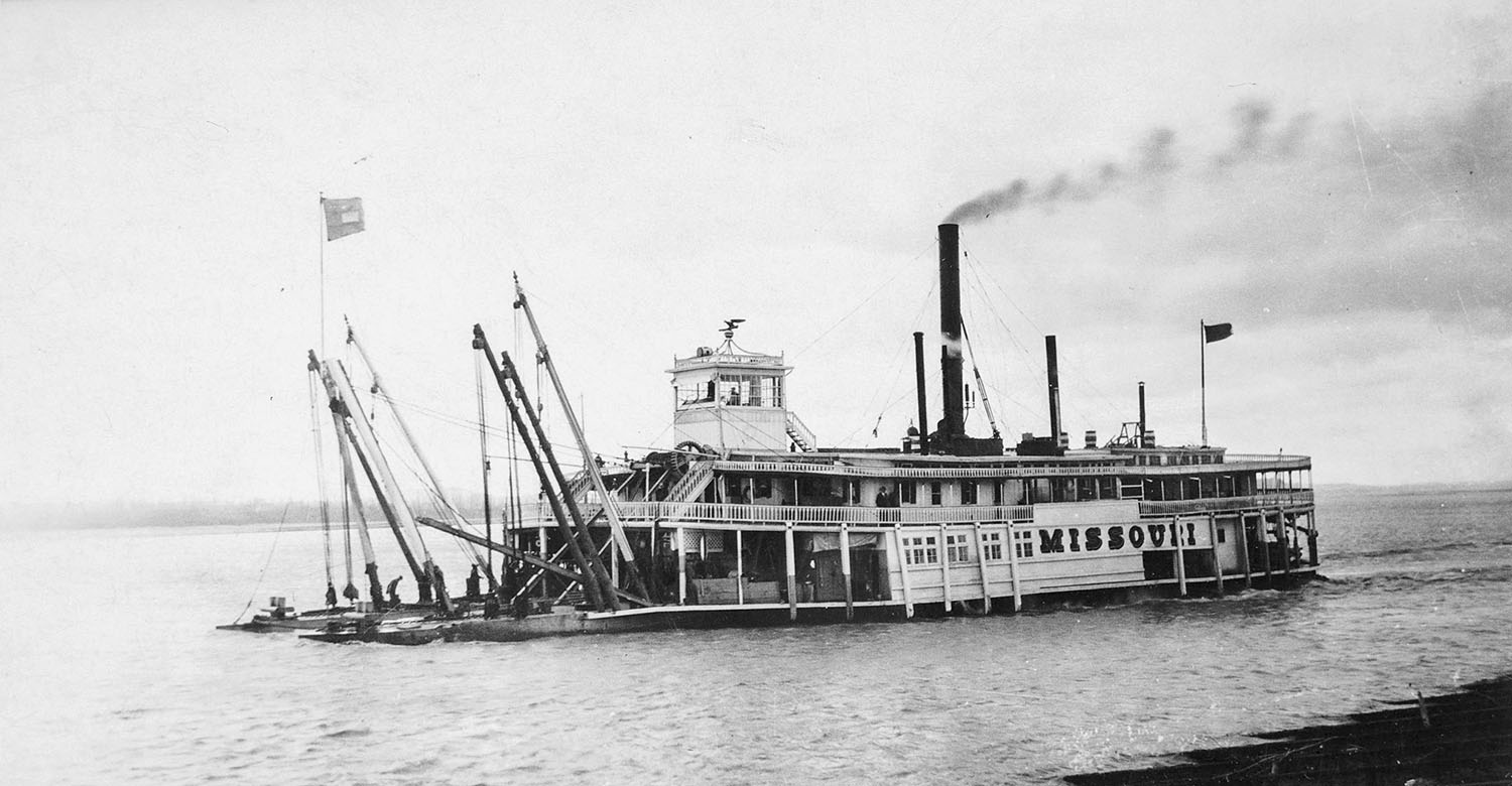 Mention was made last week of the snagboat Missouri clearing the wreck of the Str. Elisha Woods. Snagboats are a nearly forgotten, though once very important, fixture on the navigable rivers. In the era of wooden hulls, trees and snags protruding from the river bottoms could and did impale and sink many early steamboats.