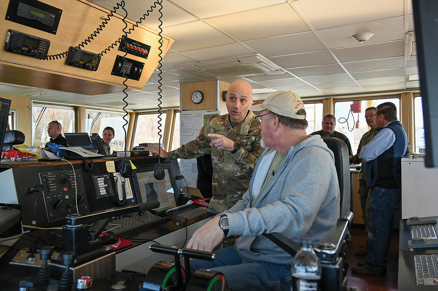 “He got a call to return to support St. Louis; I asked, ‘How much notice did we give you?’ He said 24 hours. So, 24 hours to get a crew off of leave, get that vessel under sail and get the crew back up here and get to work,” Spellmon said. He called the dredge “the equivalent of our 82nd Airborne Division.”