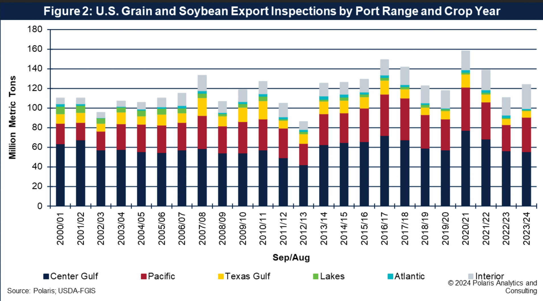 Grain and soybean exports by port range are shown in Figure 2.
