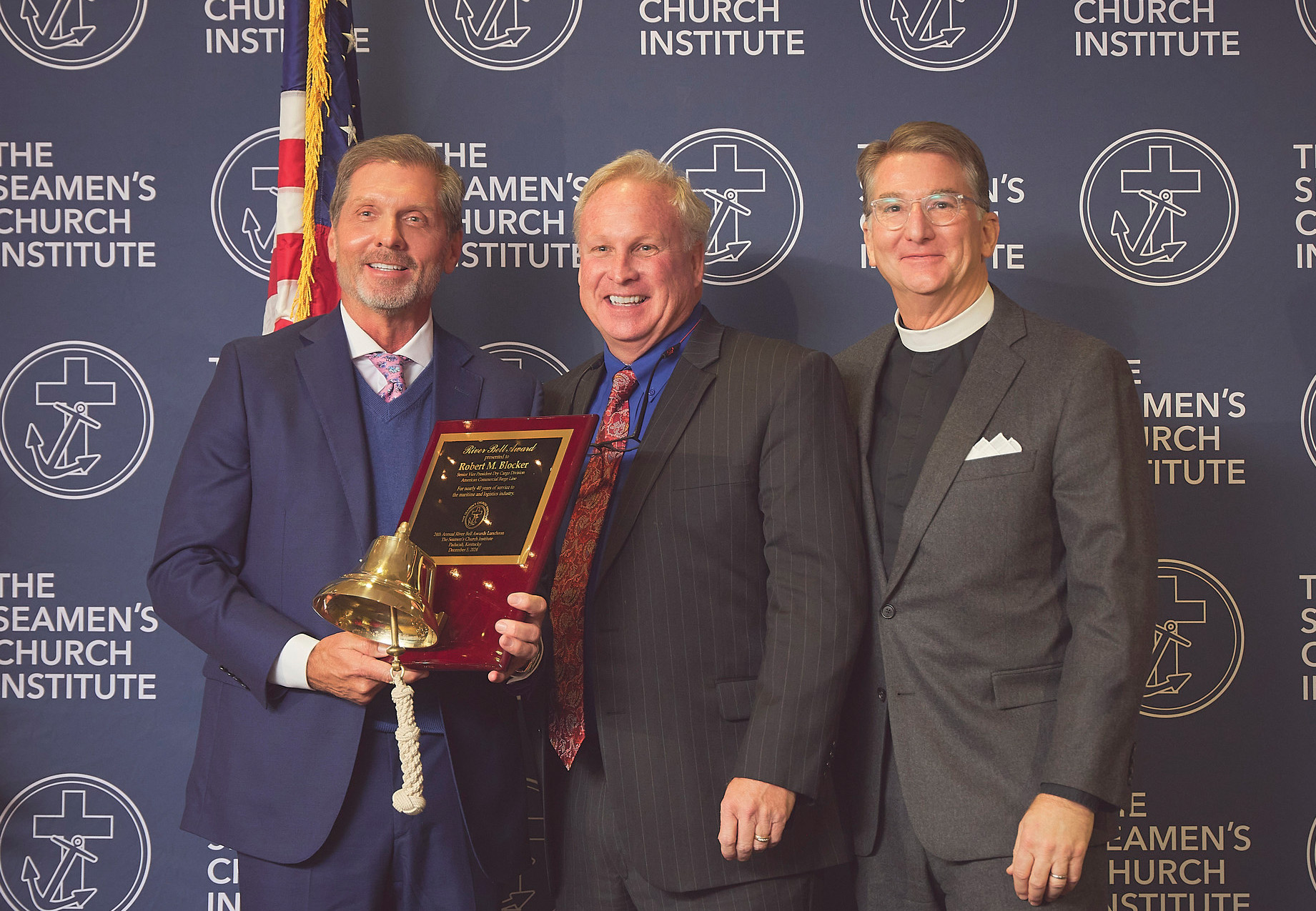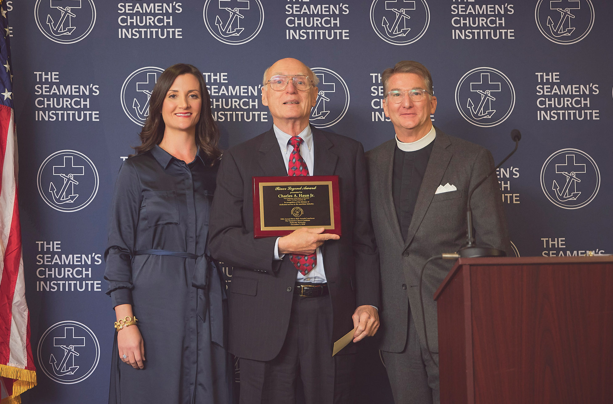 He thanked his “wife and best friend of more than 44 years,” Lori, and his three children for their support. He also acknowledged the Seamen’s Church Institute and its Ministry on the River program for what he called unmatched pastoral care, marine advocacy, continuing education and an understanding of the personal and professional demands on mariners.