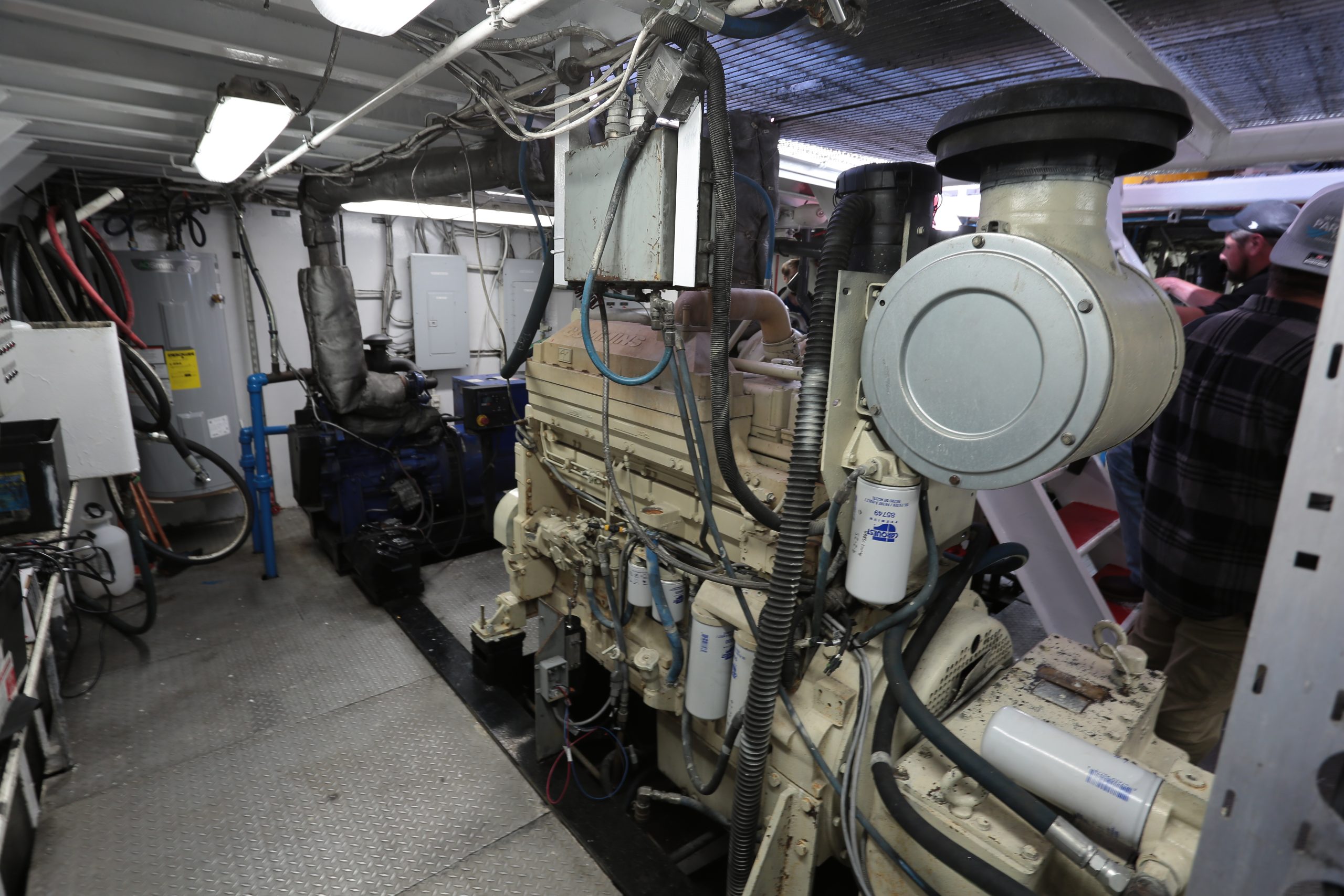 The boat features drip-less Simplan packing glands, a Yanmar 40 kw. generator, a Max 30-point alarm system, a Custom Hydraulics steering system with two steering and four flanking rudders, Seahorse wastewater treatment, Spanish cedar trim and FRP paneling, two Patterson 40-ton deck winches and Schuyler fendering throughout. Accommodations include three bedrooms and two bathrooms.