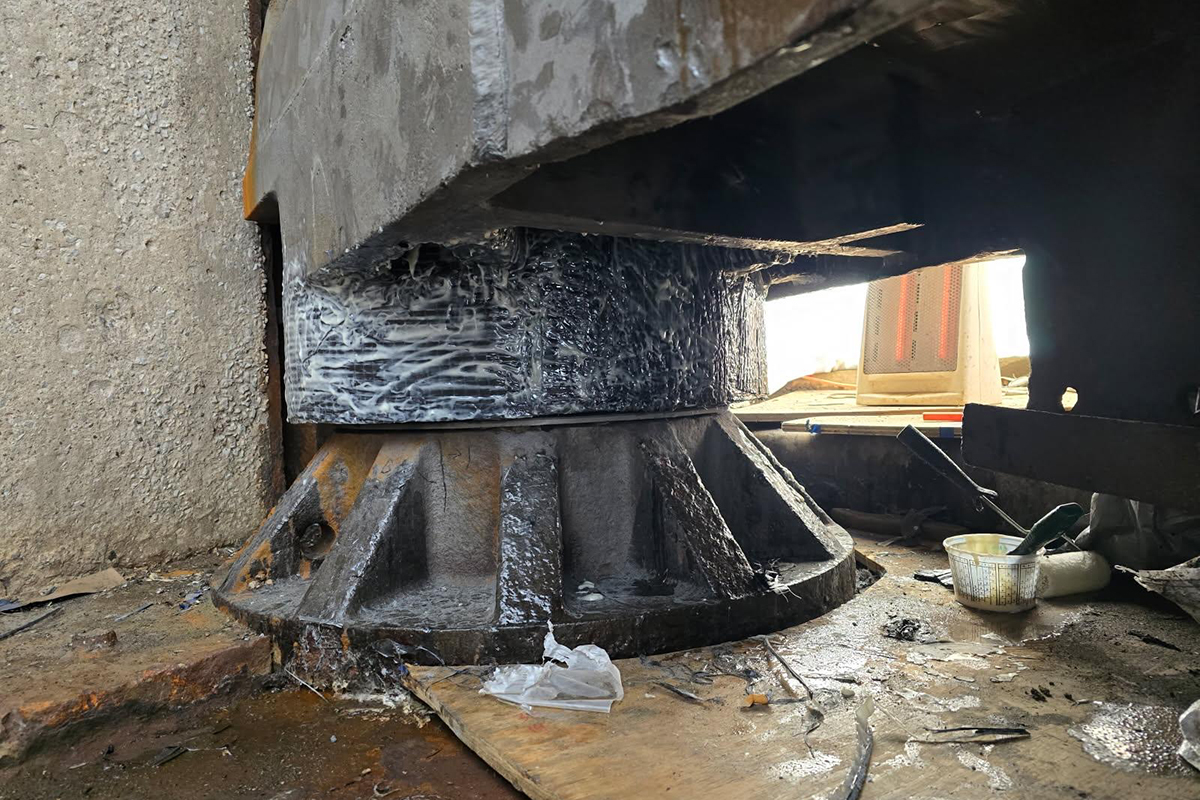 These components are normally submerged, so the damage was not known until the dewatering. Following an evaluation, a team of engineers proposed and carried out an innovative temporary repair, wrapping the cracked pintle castings with a carbon fiber-reinforced polymer, which Walsh described as akin to a Band-Aid.