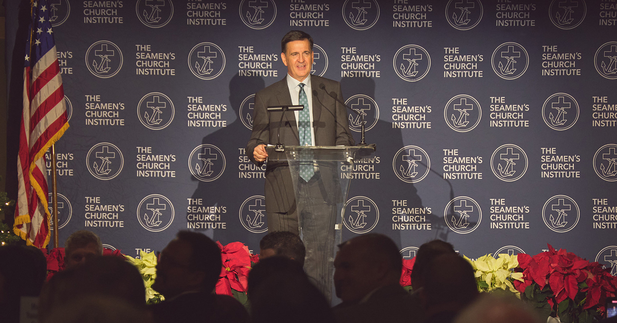 Featured photo caption: George Leavell speaks at the annual River Bell Awards Luncheon, held December 11 in Paducah, Ky. Leavell, CEO of Wepfer Marine Group, received the River Bell Award. (Photo courtesy of the Seamen’s Church Institute)