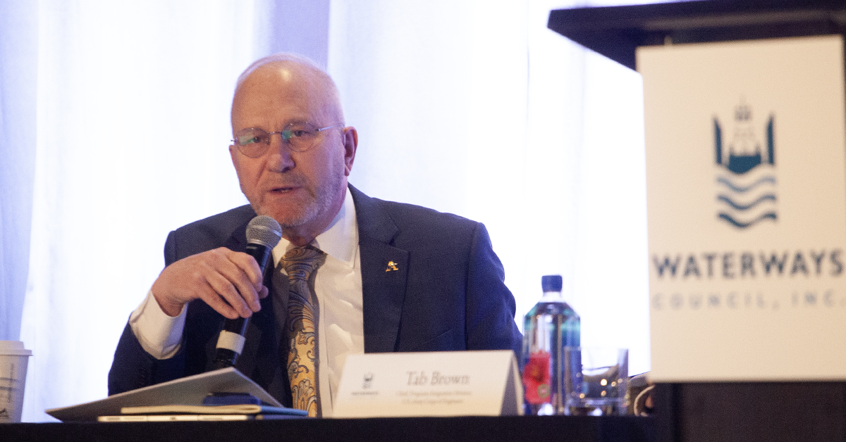 Brown, who started with the Corps in 1983, and Hill, who is responsible for strategic oversight and execution of the Corps’ annual operations, maintenance and regulatory functions, both addressed critical challenges facing the Corps of Engineers as the agency seeks to maintain aging navigation structures and build new locks and dams.