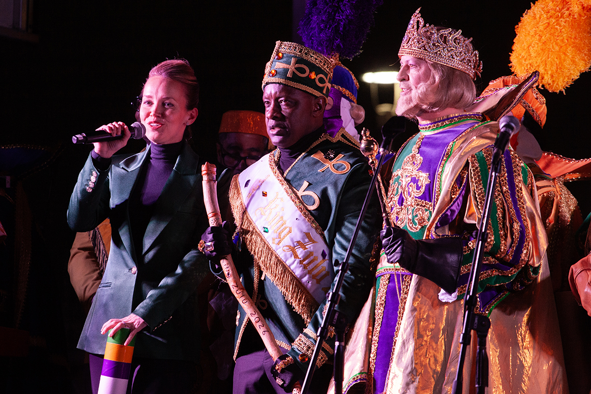 Lane then took to the stage, declaring a day of merriment in the city and standing alongside Ronald Tassin, the king of Zulu, and New Orleans Mayor Helena Moreno.