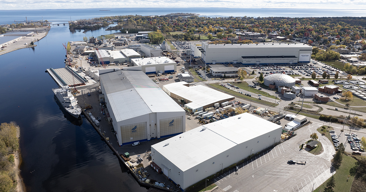 Featured image caption: An aerial view of one of Fincantieri’s shipyards in Green Bay, Wisc., with Green Bay in the background. (Photo courtesy of Fincantieri)