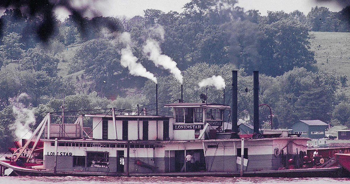 The steamer Lone Star at work on the Upper Mississippi River. (Photo from the collection of Capt. Bill Judd)