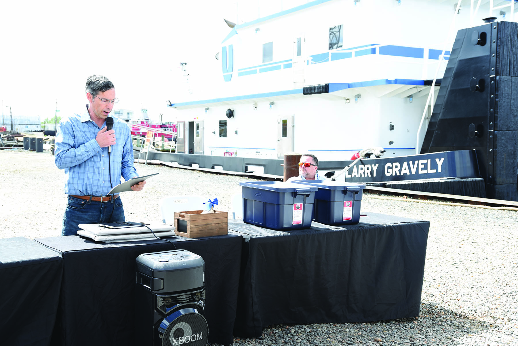 “I didn’t expect it,” Gravely said. “Normally boats get named over here after division presidents or someone who’s passed away. So, I reckon I’m the only one who isn’t the president of a company, and I’m surely not dead yet!”
